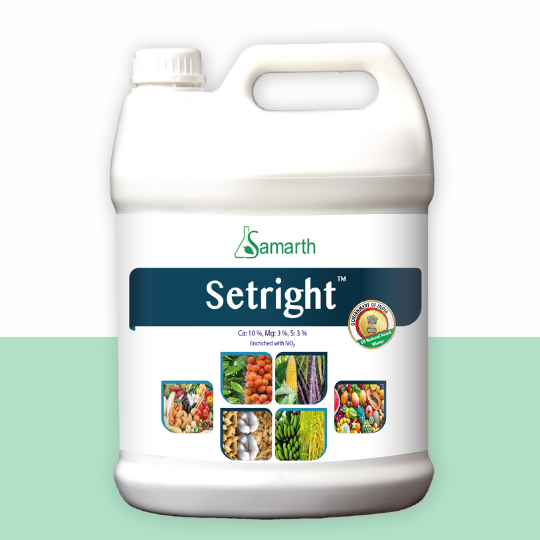 Samarth Setright contributes to secondary nutrients (Ca, Mg, S) needs of the crop and conditioning the soil, thereby contributing to the physical and chemical properties of the crop.